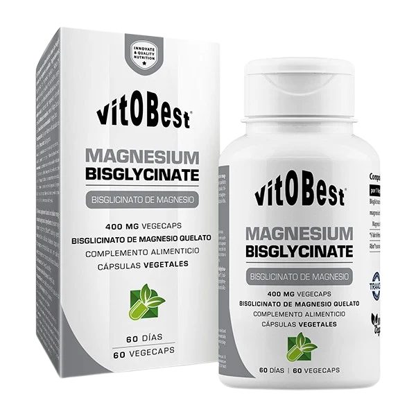 Magnesium Bisglycinate, de Vitobest®, es un complemento alimenticio formulado con bisglicinato de magnesio de Albion™, desarrollado bajo el sistema patentado TRAACS® (The Real Amino Acid Chelate System), que garantiza una quelación real, estable y clínicamente eficaz1,2.