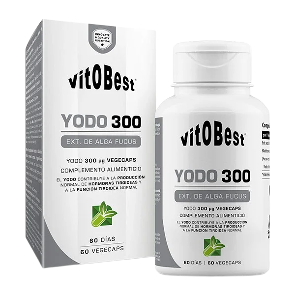 Yodo 300, de Vitobest®, es un suplemento alimenticio 100 % natural, compuesto de 300 mg de extracto seco de alga fucus que aporta 300 µg de yodo por toma.